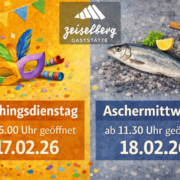 Geöffnet an Faschingsdienstag & Aschermittwoch.