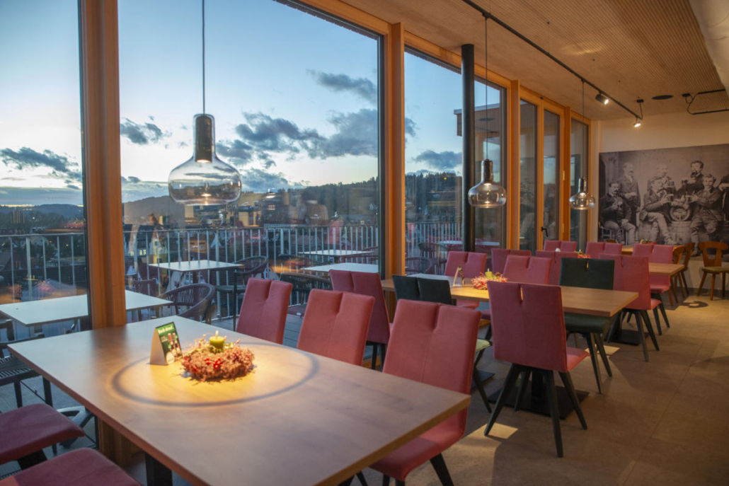 Die Gaststätte auf dem Zeiselberg verbindet traditionelle Brauereikultur mit moderner Gastlichkeit. Im Gastraum finden rund 70 Gäste Platz, hinzu kommen etwa 30 weitere Sitzplätze im Wintergarten sowie eine kleine Terrasse mit 16 Plätzen für die warme Jahreszeit. Von hier oben öffnet sich ein schöner Blick über Schwäbisch Gmünd, der den besonderen Standort unserer Gaststätte unterstreicht.